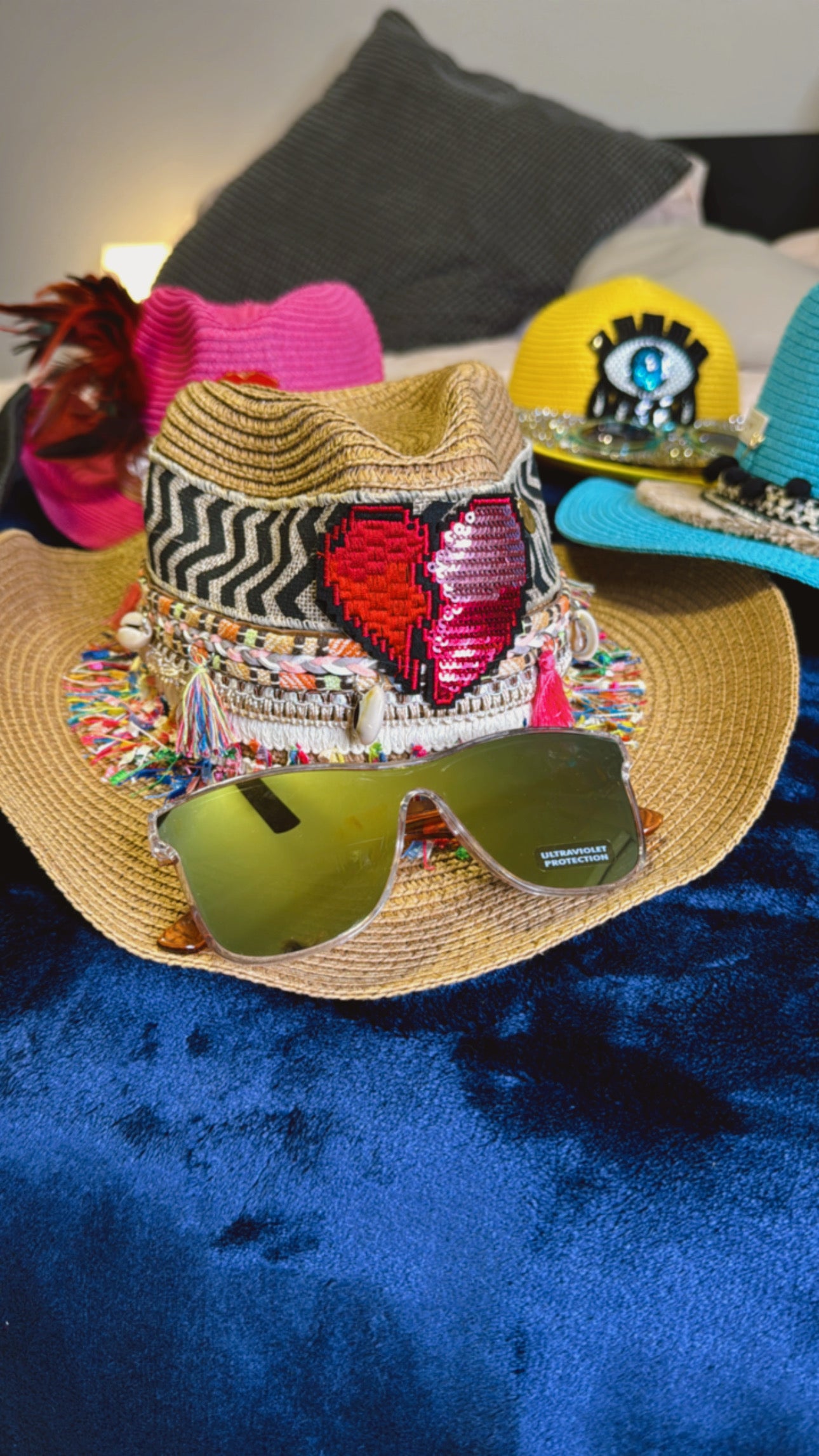 “Elegancia única diseñada por mí para ti. Cada sombrero es una creación exclusiva, y como parte de nuestra propuesta especial, recibirás un par de lentes gratis para completar tu look. La dupla perfecta, pensada para destacar tu estilo.”